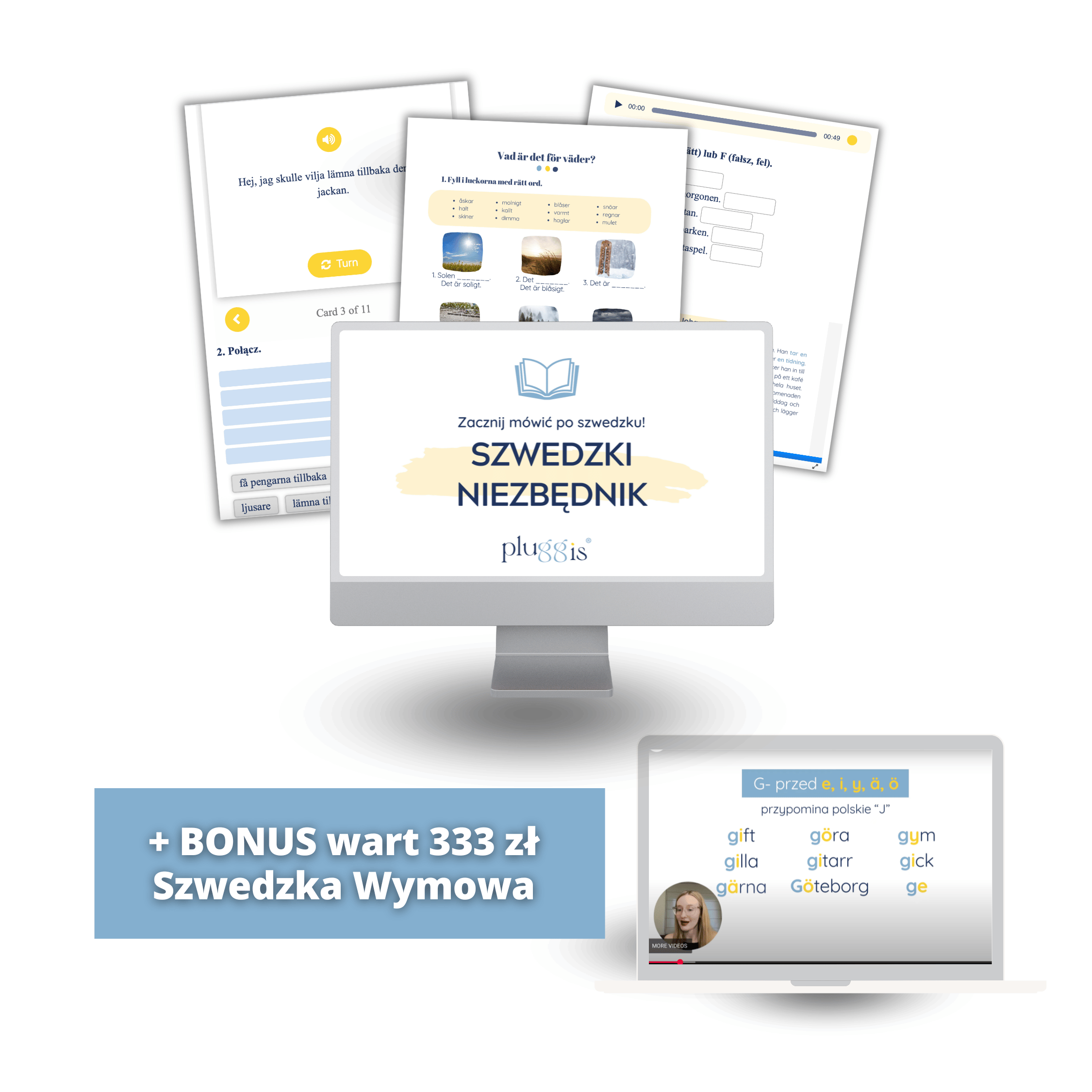 PLUGGIS to platforma językowa, umożliwi Ci codzienny kontakt ze szwedzkim. Znajdziesz na niej kursy na różnym poziomie zaawansowania. Codzienne zwroty od razu przyswajasz z prawidłową wymową, a dzięki interaktywnym ćwiczeniom zapamiętasz je z prędkością światła.